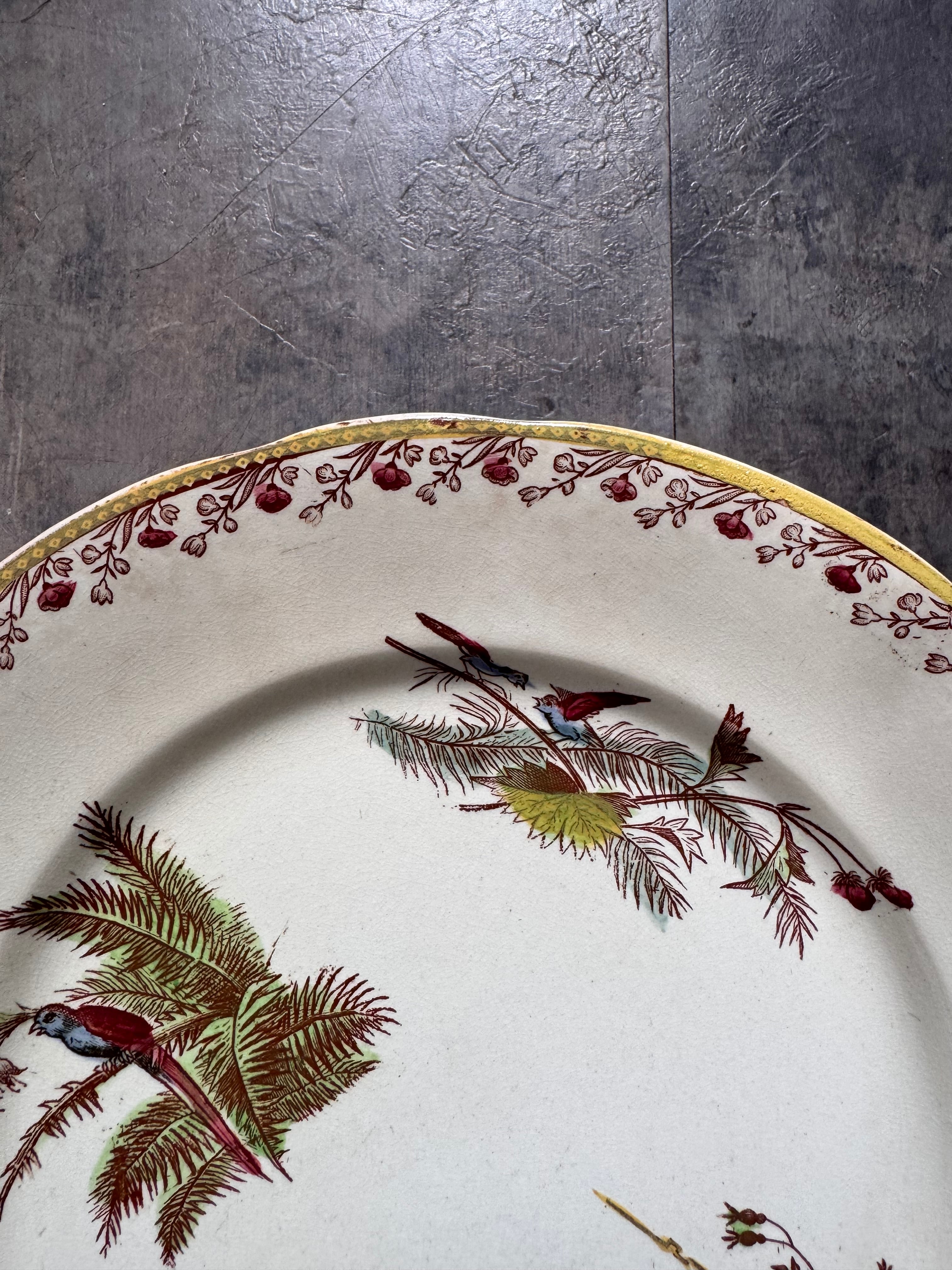 人気の多色使いの、小鳥や植物が可愛らしいプレートです。