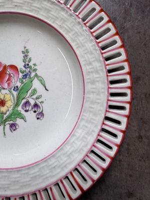 繊細な縁取りに小さなブーケの様な花々が描かれた