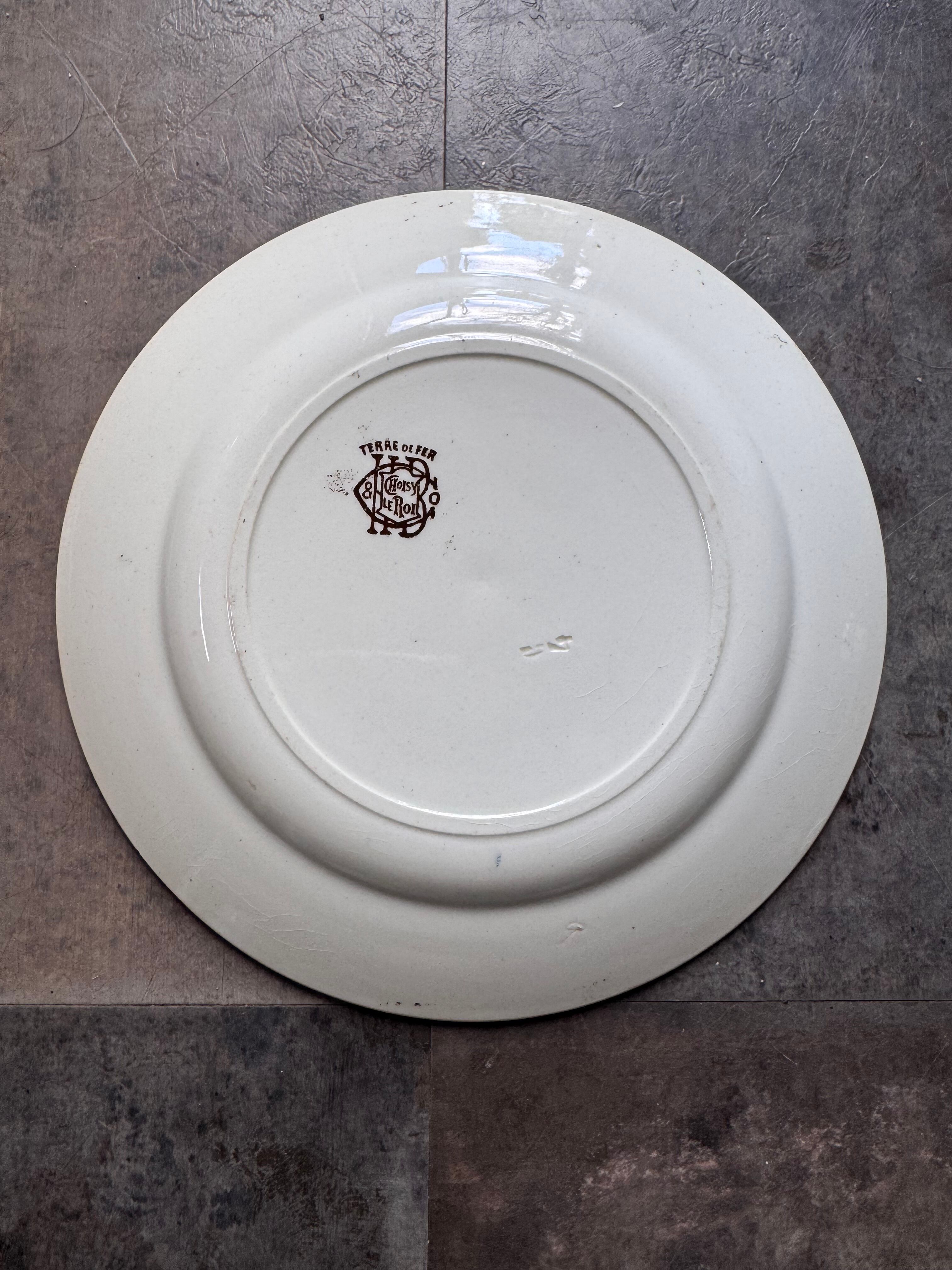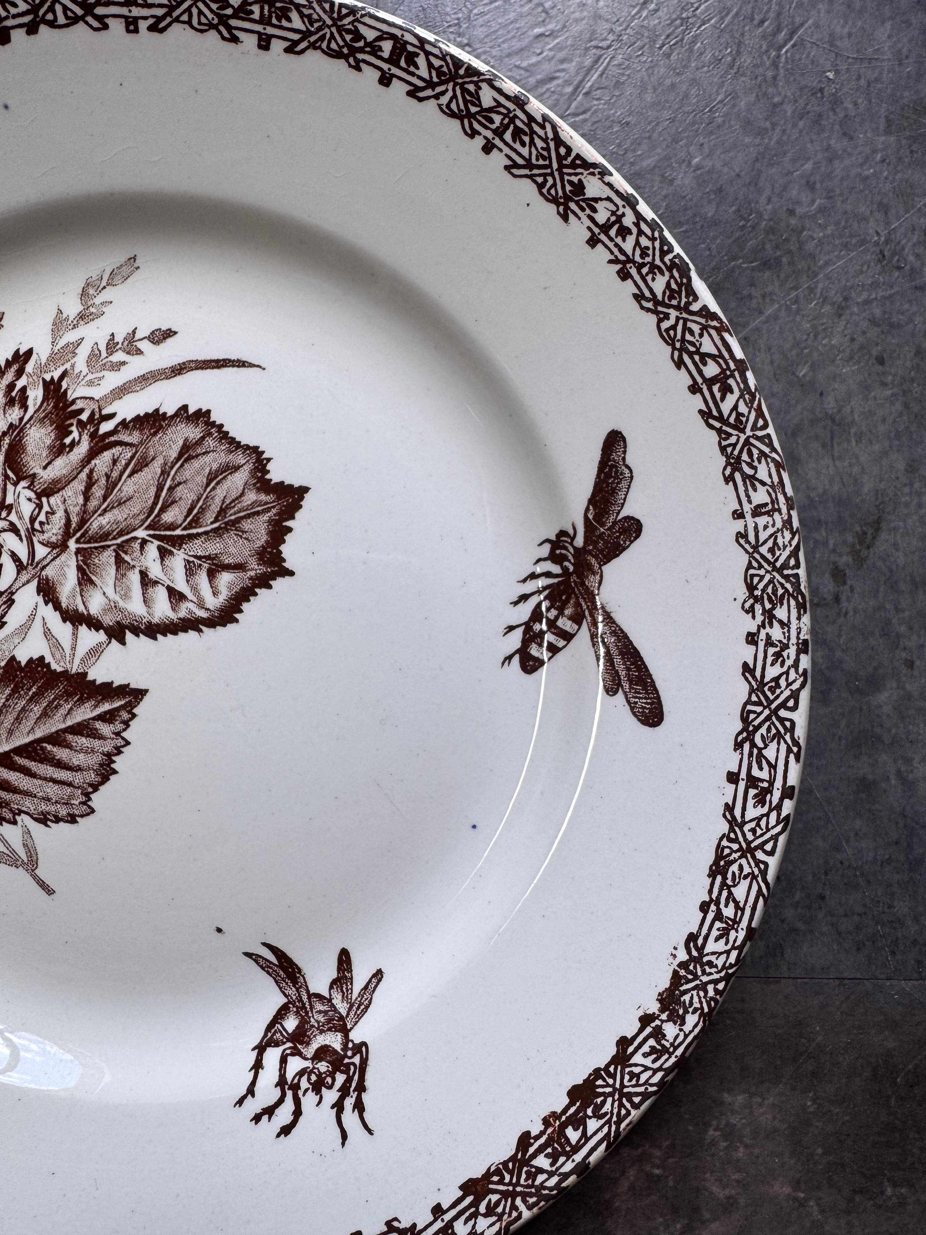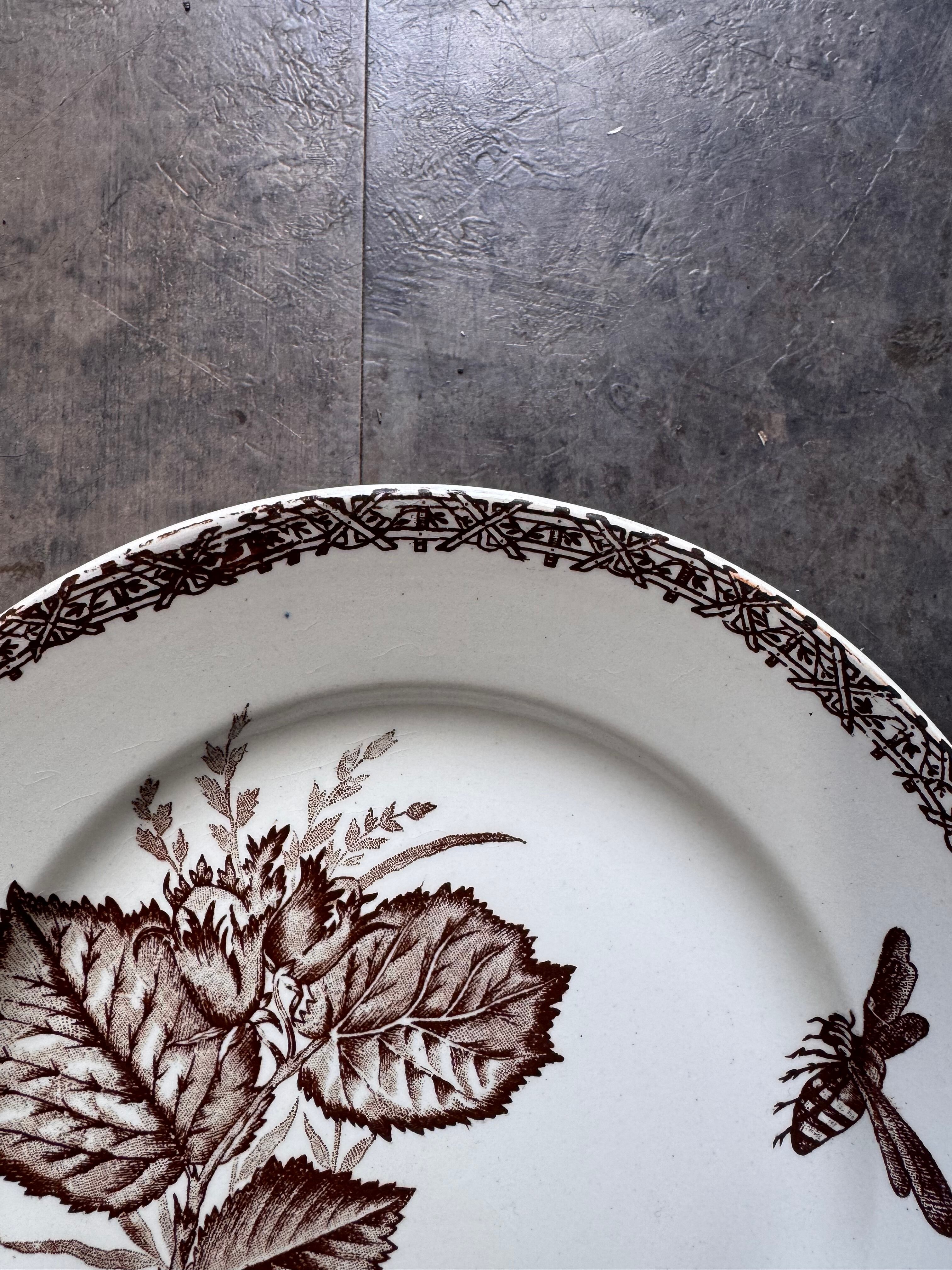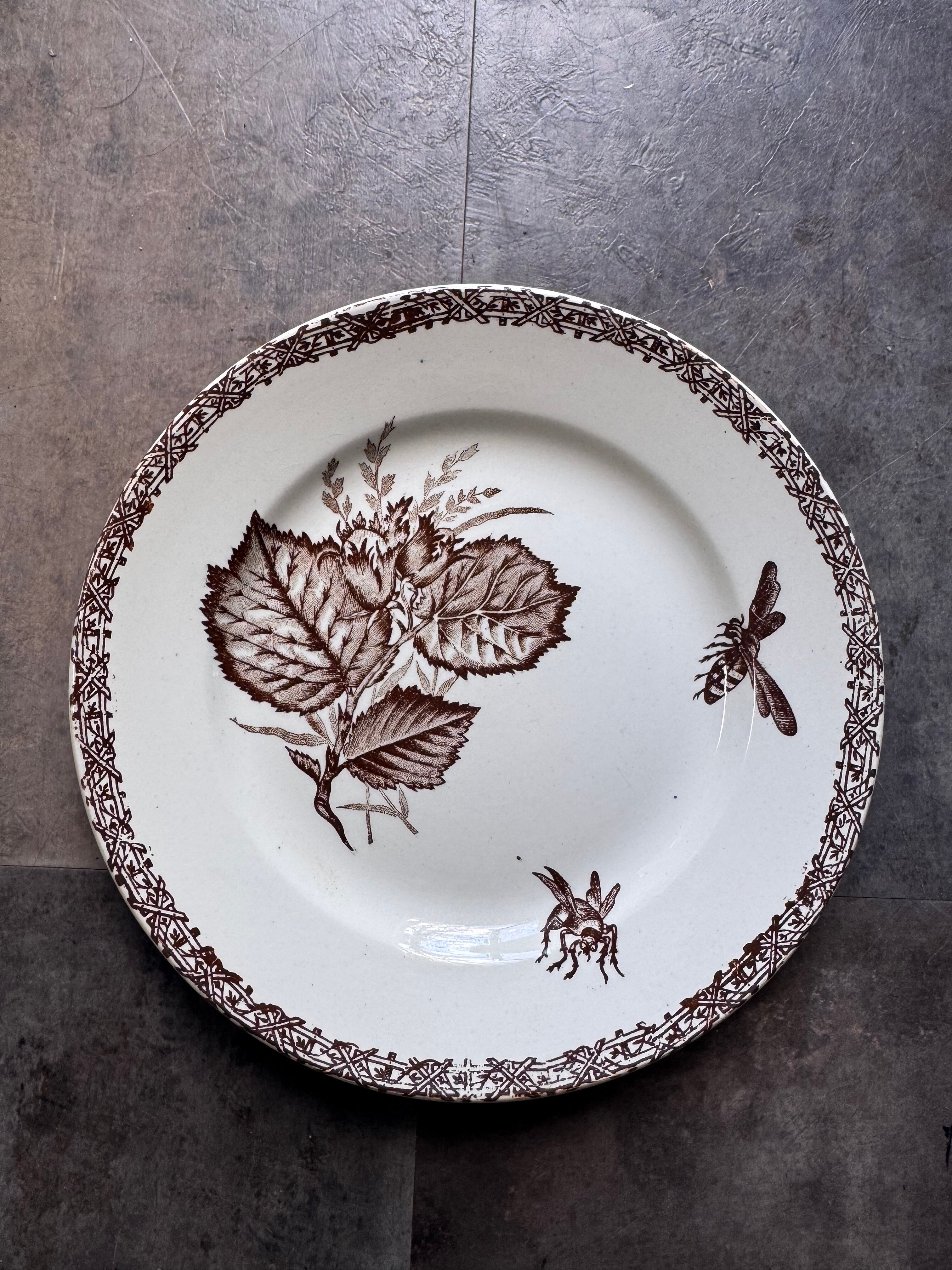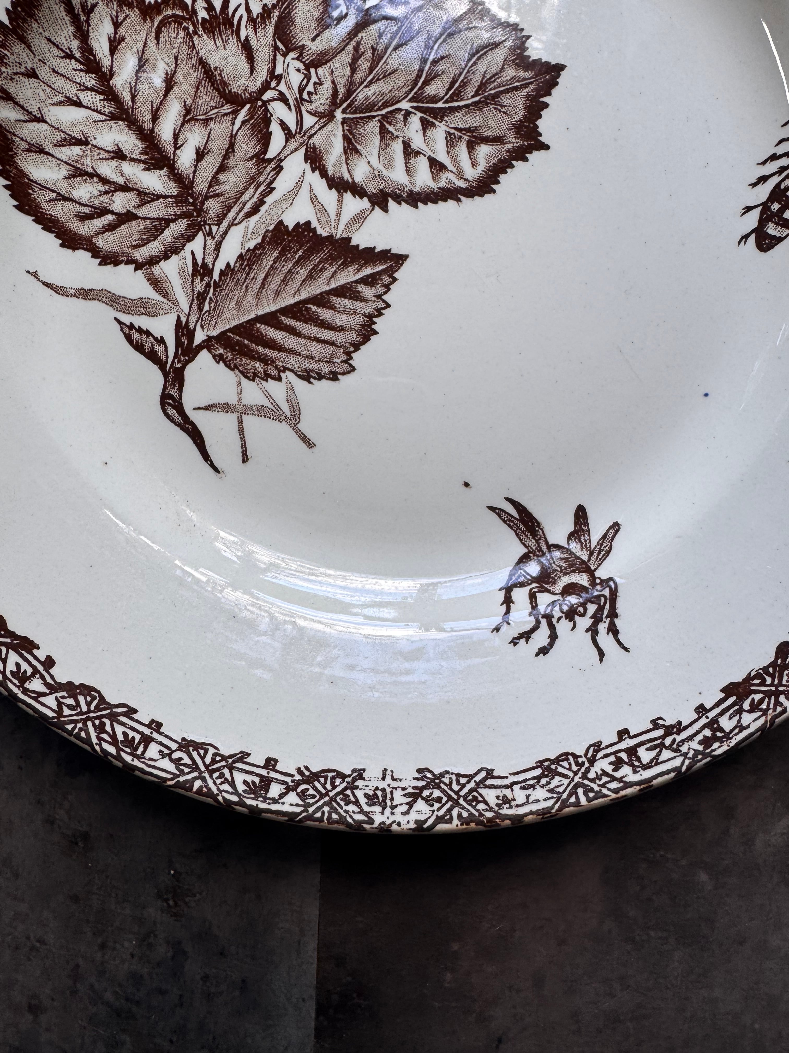 まだ蕾のバラの周りを飛び交う蜂や虫達が描かれた印象的なプレートです。