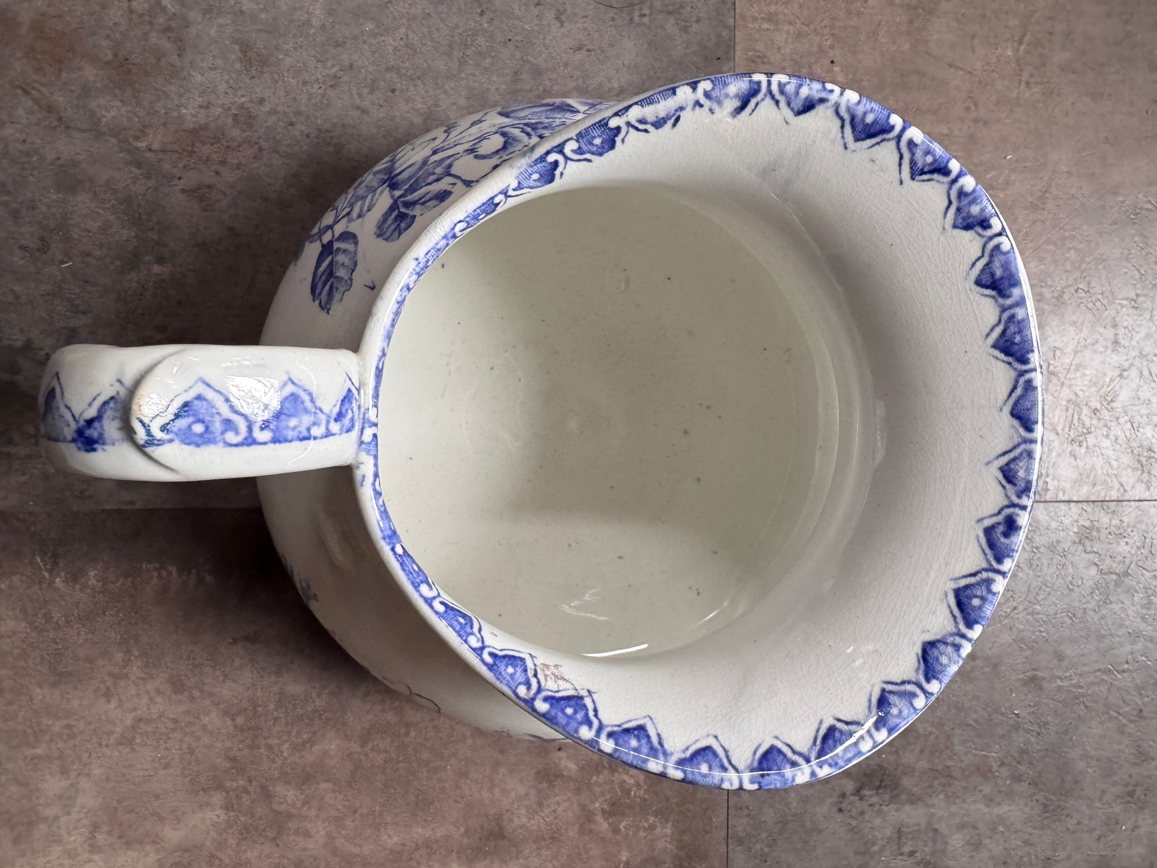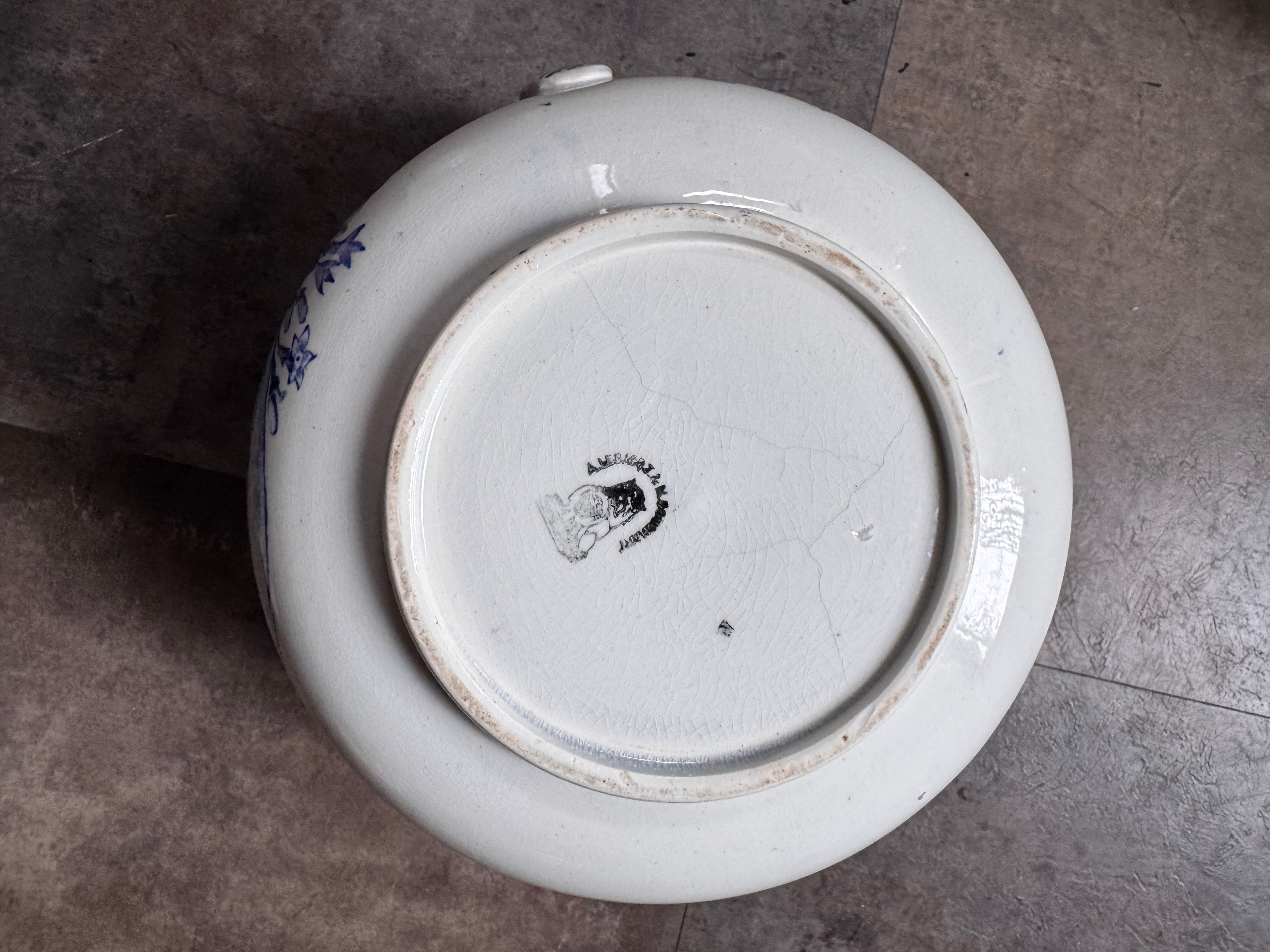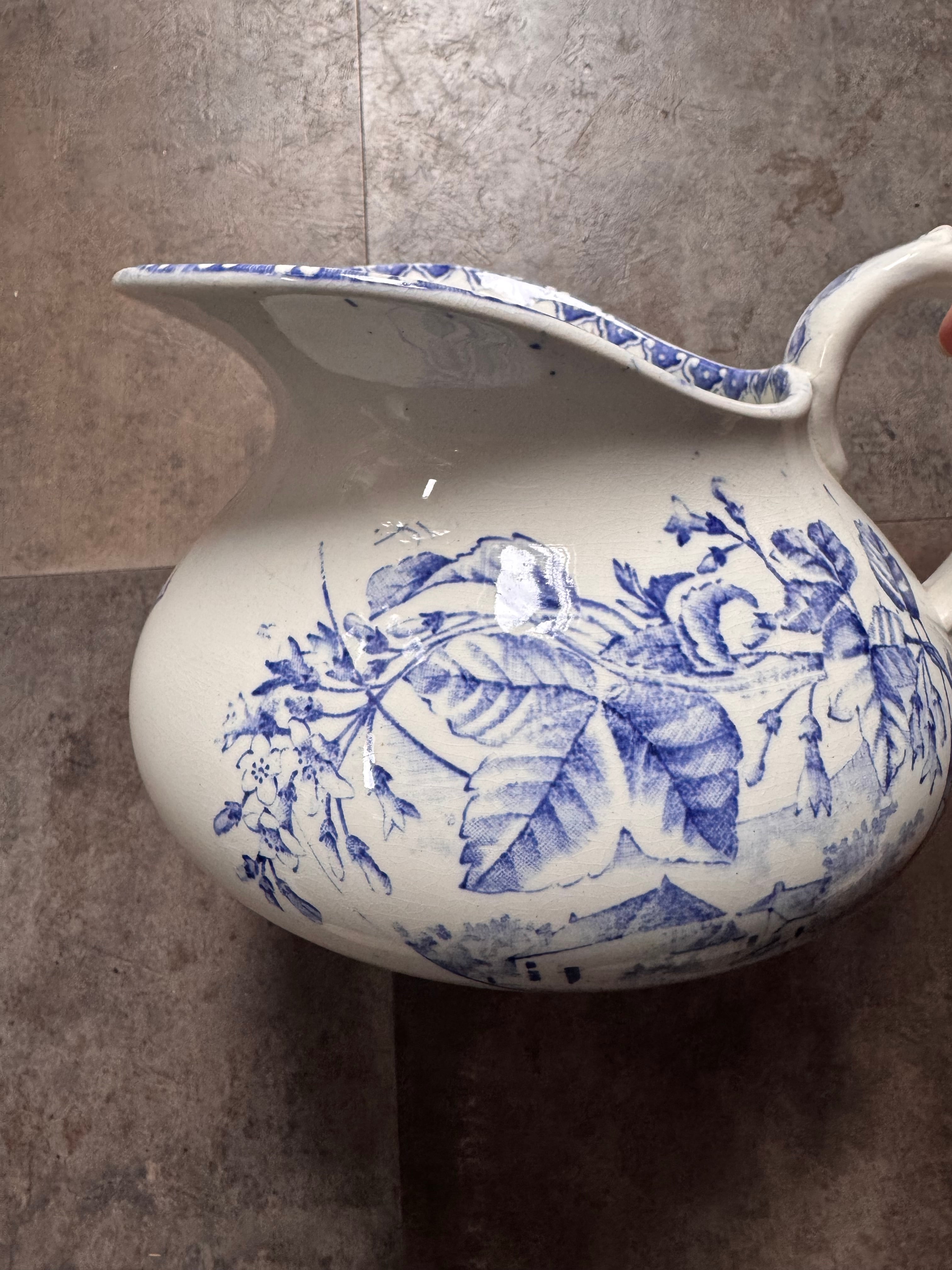 花々や景色、小さな犬が落ち着いた色合いで描かれたとても素敵なピシェです。