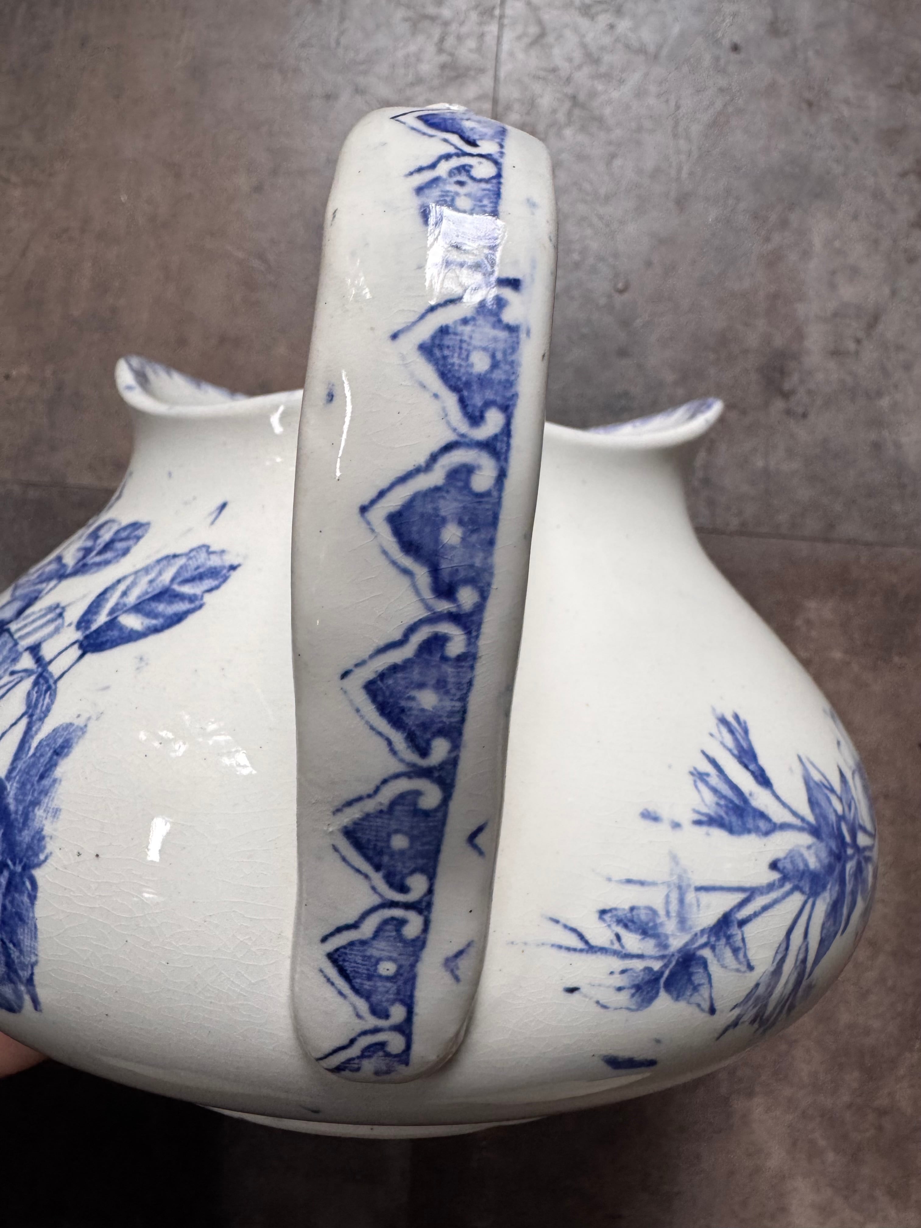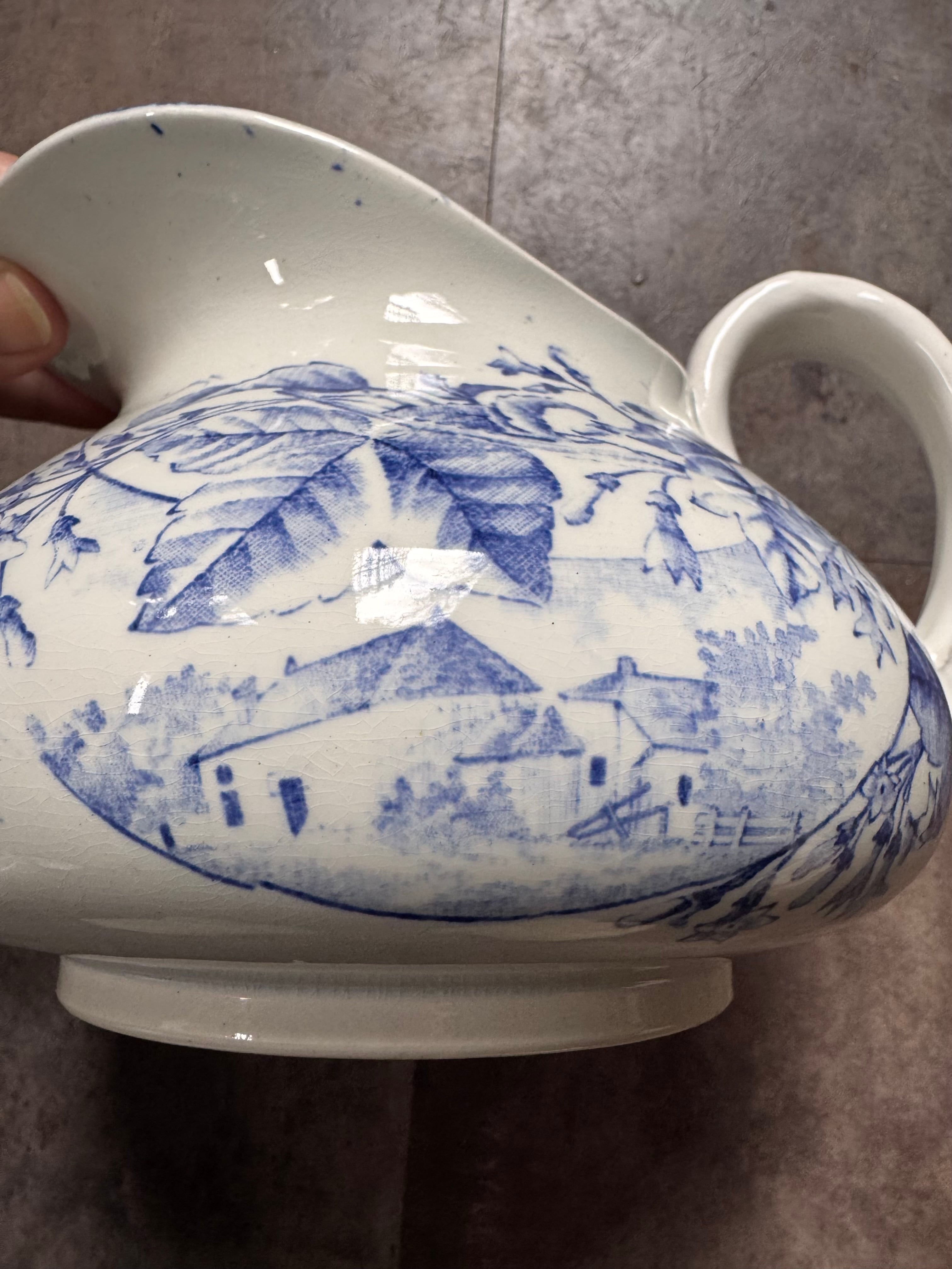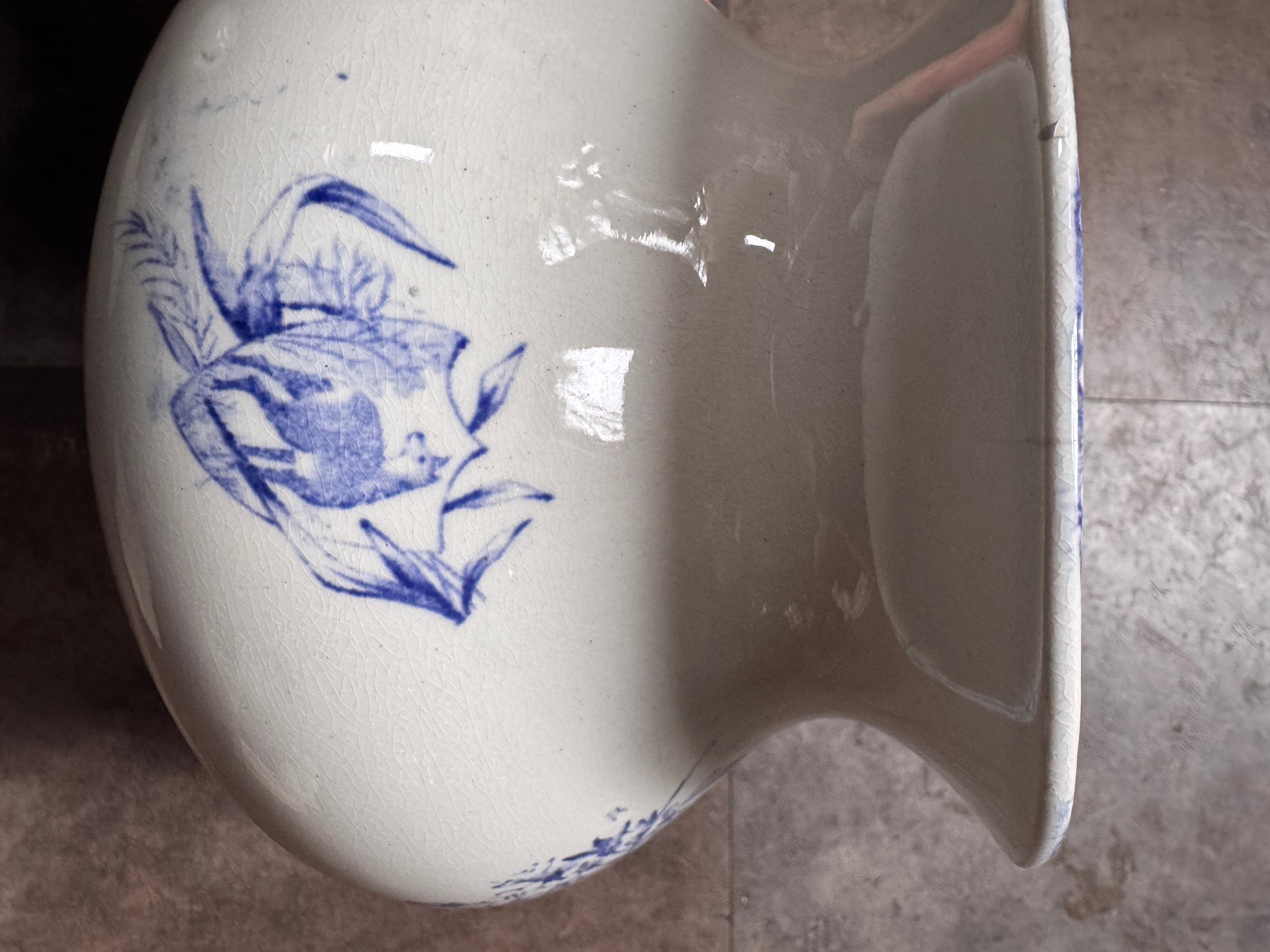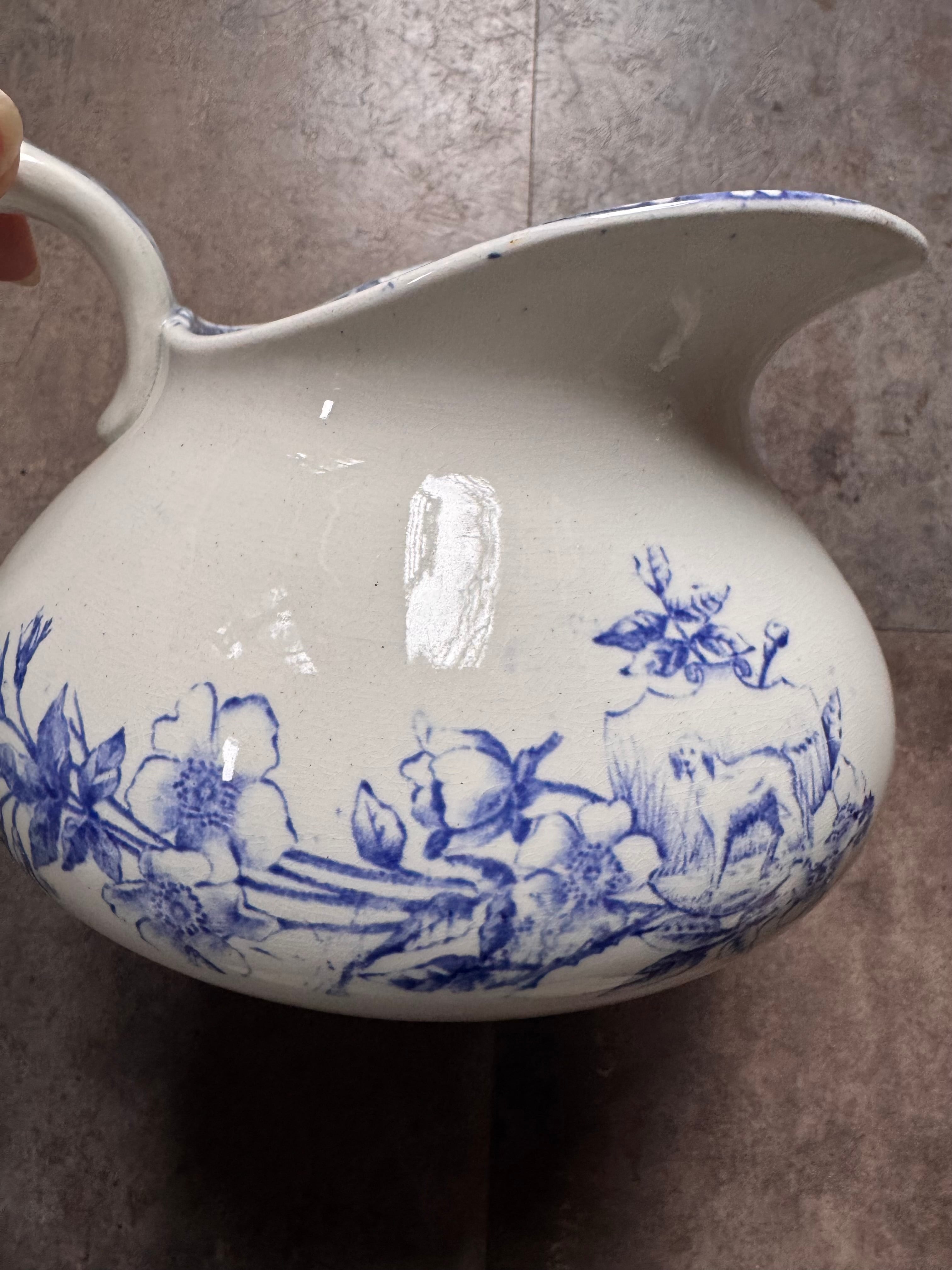 花々や景色、小さな犬が落ち着いた色合いで描かれたとても素敵なピシェです。