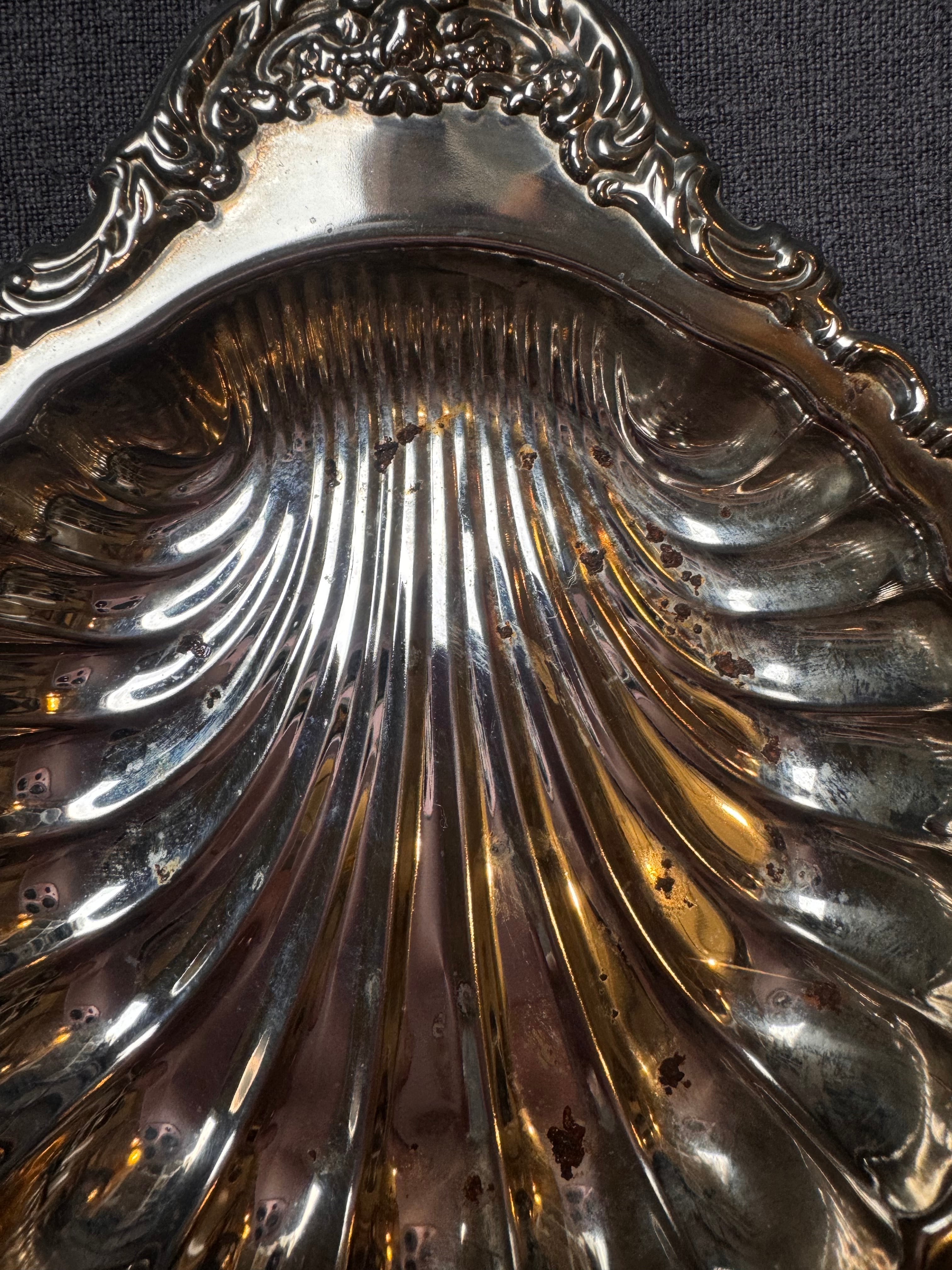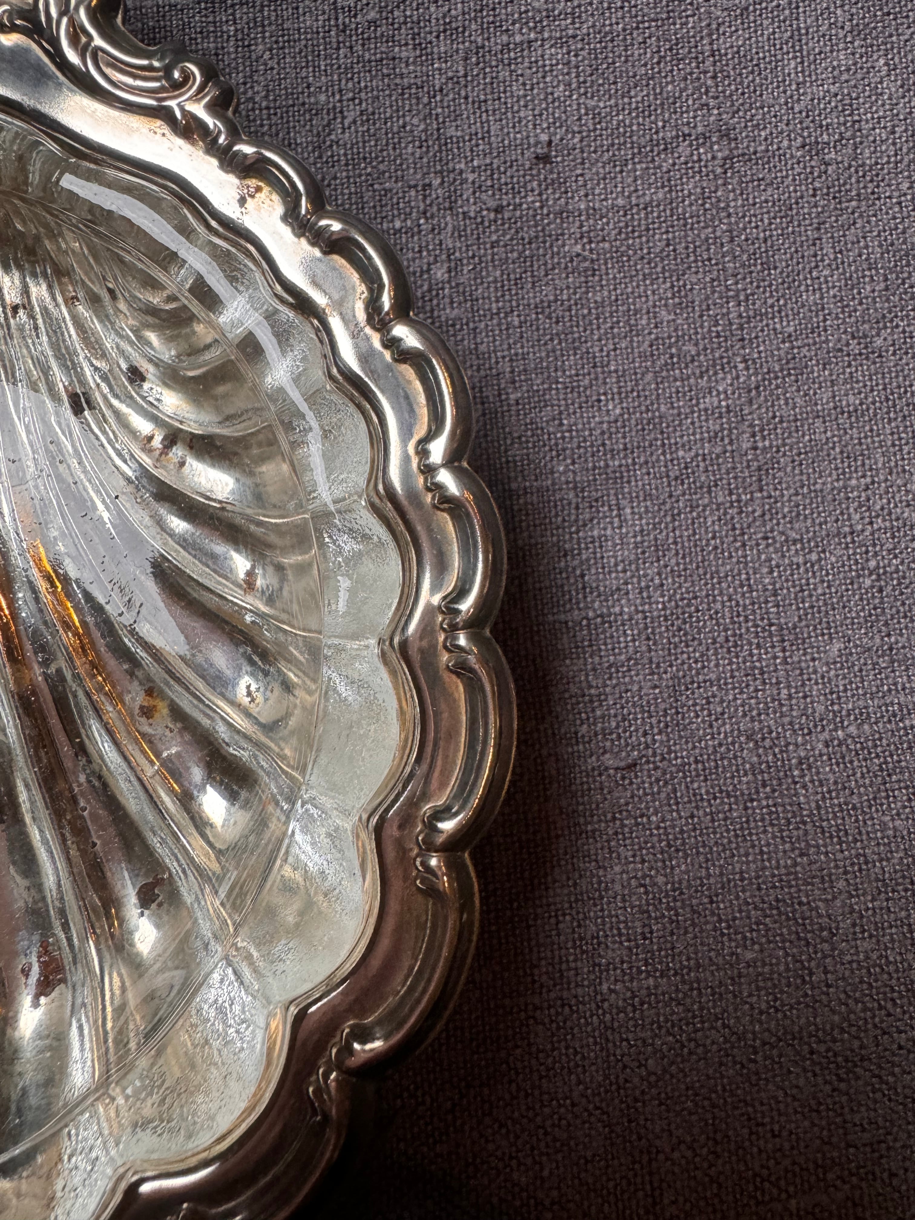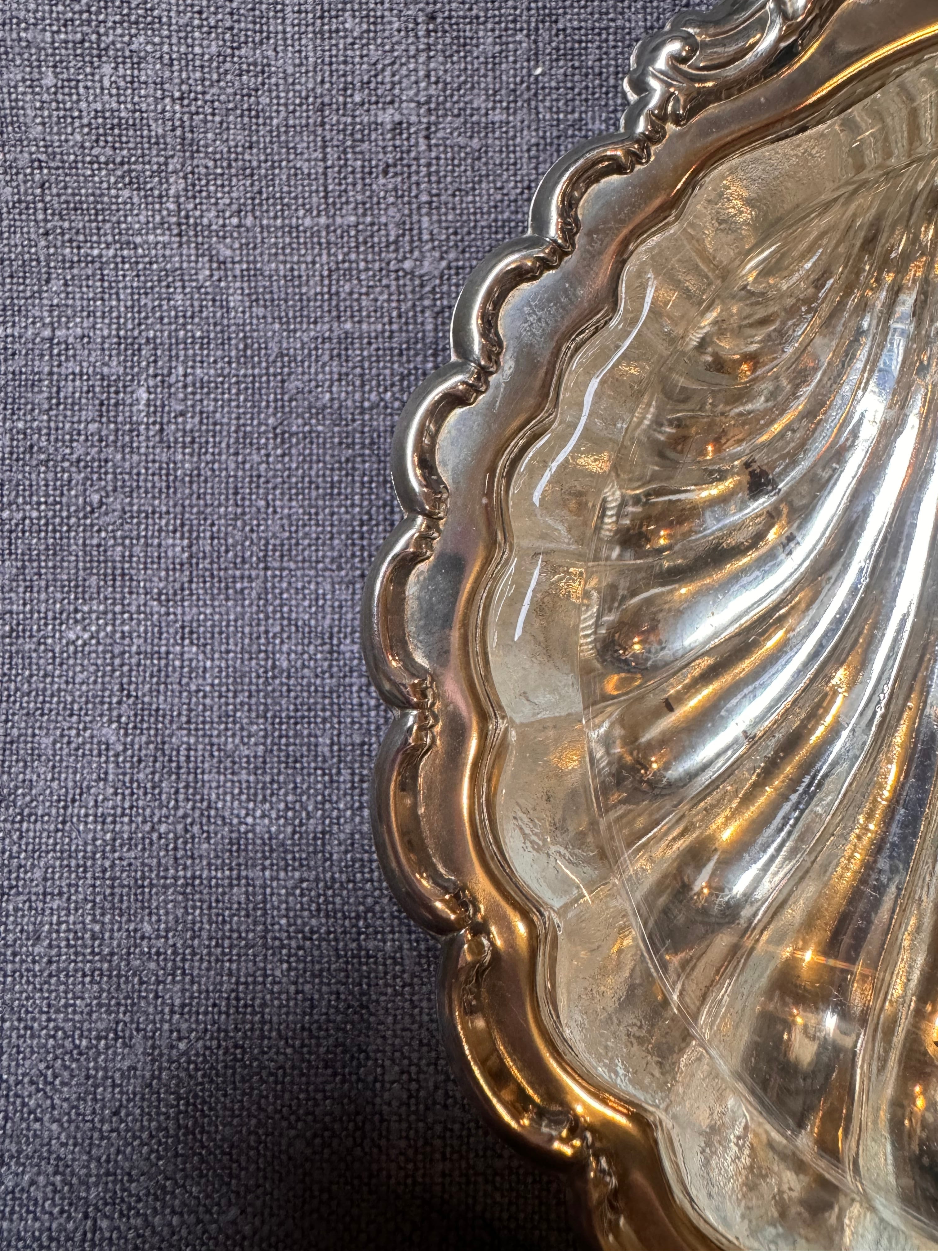 美しいデザインのトレイにガラスのシェル型のトレイが重なっています