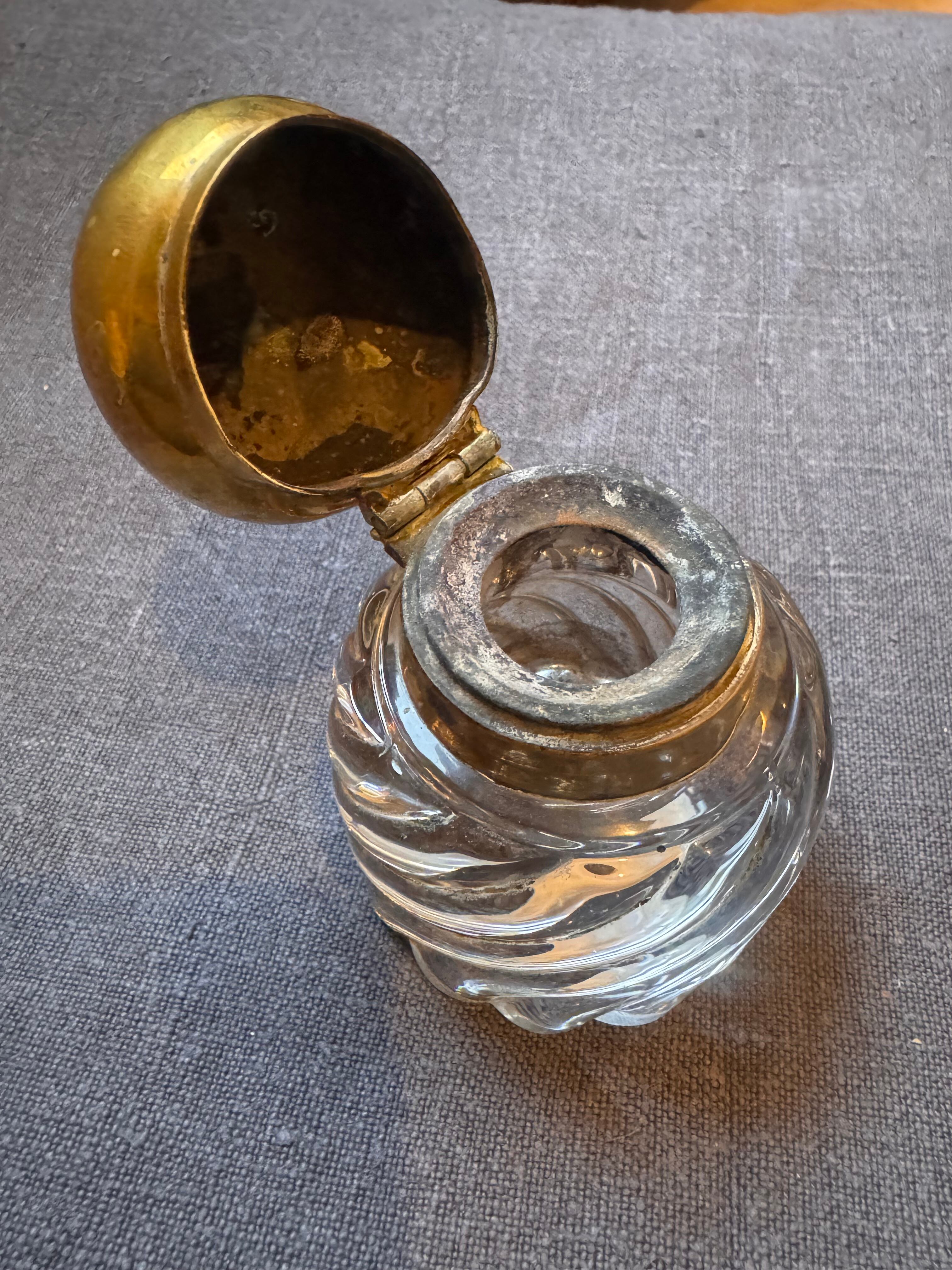 ずっしりと重たく、ガラスのカットが大変美しいインク瓶です